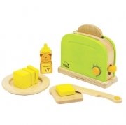 Educo ED861252 Review: Educo Rise' N Shine Toaster. This is a very nice wooden toaster set for a great price - so much nicer than the plastic sets on the market. The quality is great and the kids seem to enjoy it, especially the "toast popping up" feature and the cutting butter. I wish the toaster and items were slightly larger in size but it is nice for small hands and the kids do not seem to notice. I wish that Educo did not place their logo in such an obvious place on their toys (too large and ... Read more »